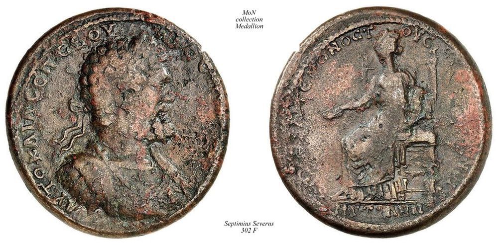 laureate and cuirassed bust of Septimius Severus, right, seen from front, with gorgoneion on cuirass.